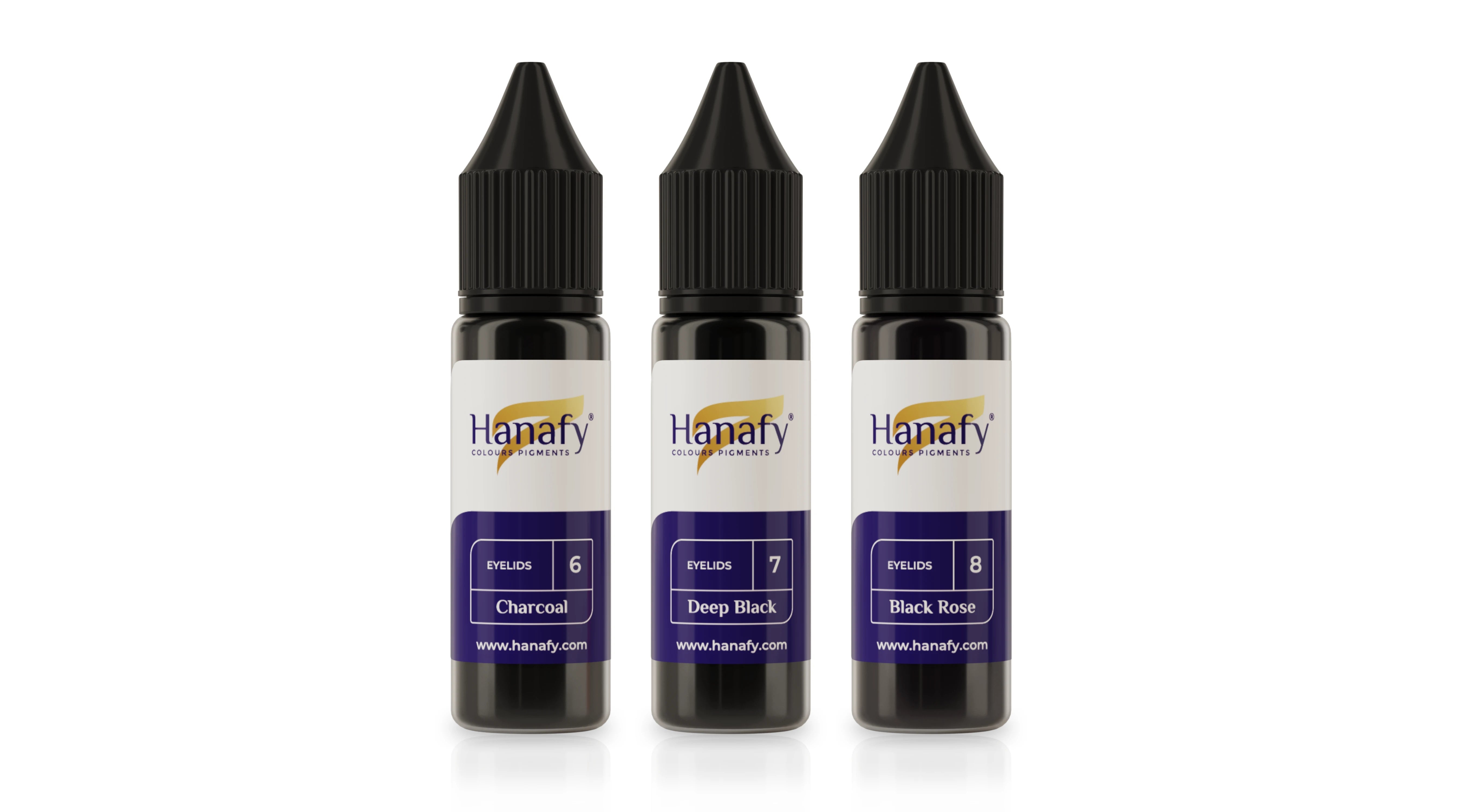 The set of Hanafy eyeliner pigments in a beautiful box for travel and storage The full eyeliner set includes 3...