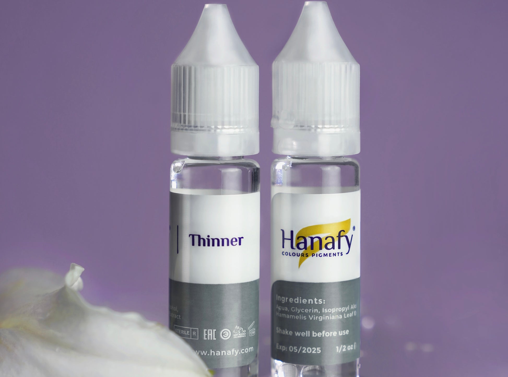 Universal pigment thinner is added to reduce the concentration of the dye, as well as for shadow effects on the eyebrows, lips and eyelids. Can be used in the manufacture of mixes.